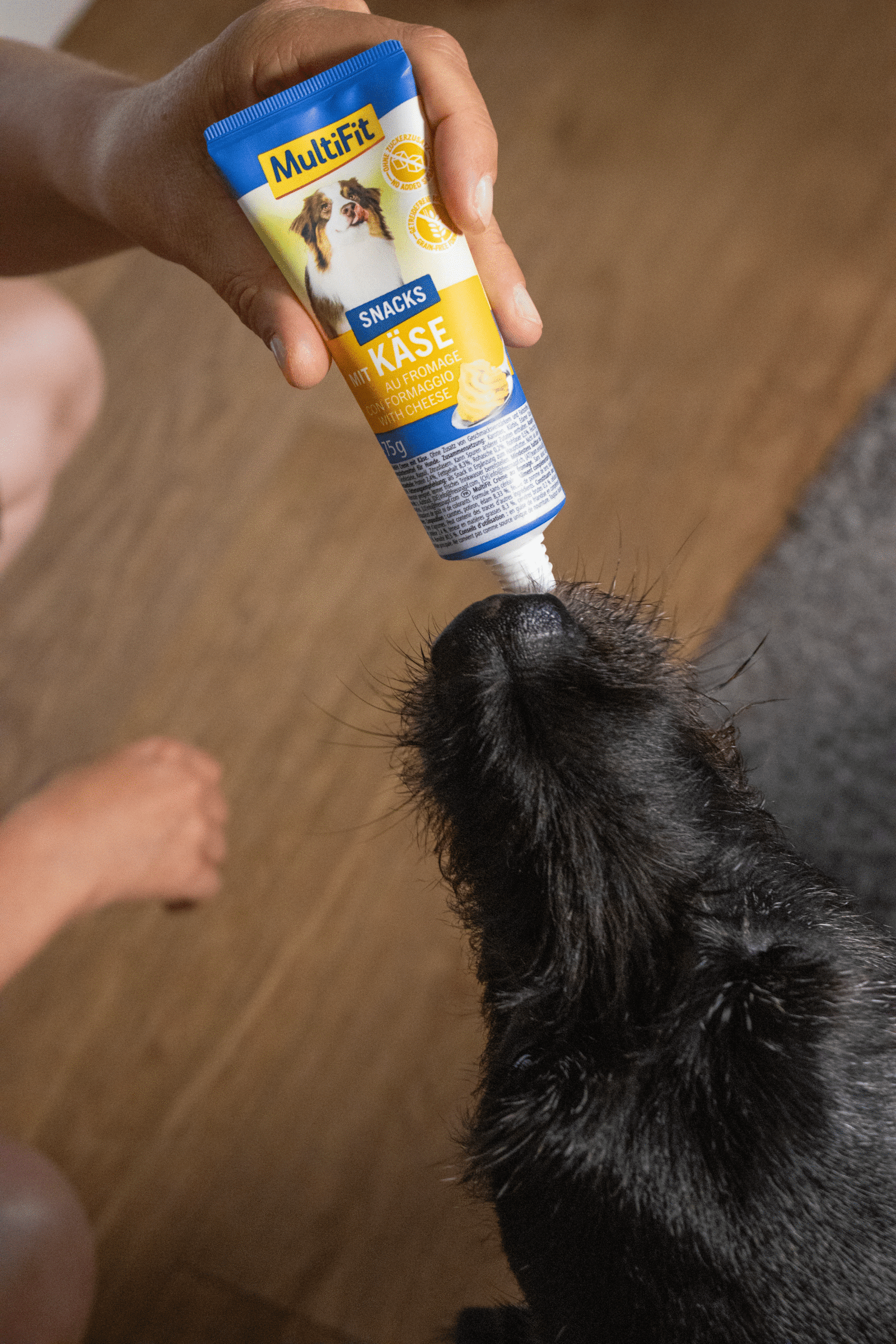 Dein Hund liebt Käse? Dann ist diese leckere Creme die perfekte Lösung, besonders, wenn’s mal schnell gehen muss. Egal ob direkt aus der Tube, einer Schleckmatte oder in ein Spielzeug gefüllt – deine Fellnase ist beschäftigt und wird zeitgleich hochwertig belohnt.